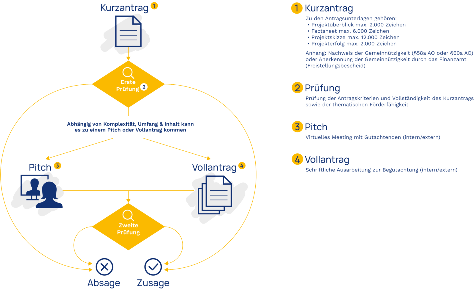 Nach positiver Erstprüfung bitten wir Sie gegebenenfalls um einen Pitch oder einen Vollantrag. Bitte lassen Sie uns wissen, welche Variante Sie bevorzugen würden.