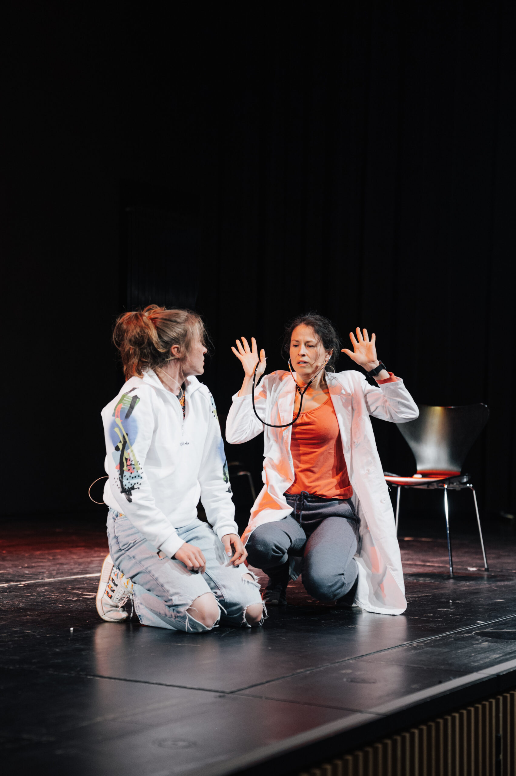 Das im Projekt entstandene Stück, das im Mai im Amerikahaus München seine Uraufführung feierte, erzählt zwei miteinander verwobene Geschichten: Eine Ärztin steht vor Gericht, weil sie bei der Beratung eines todkranken und lebensmüden Patienten einen KI-Chatbot konsultiert hat. Gleichzeitig sucht ihre entfremdete und einsame Tochter bei demselben System nach emotionalem Halt – und gerät ins Straucheln.