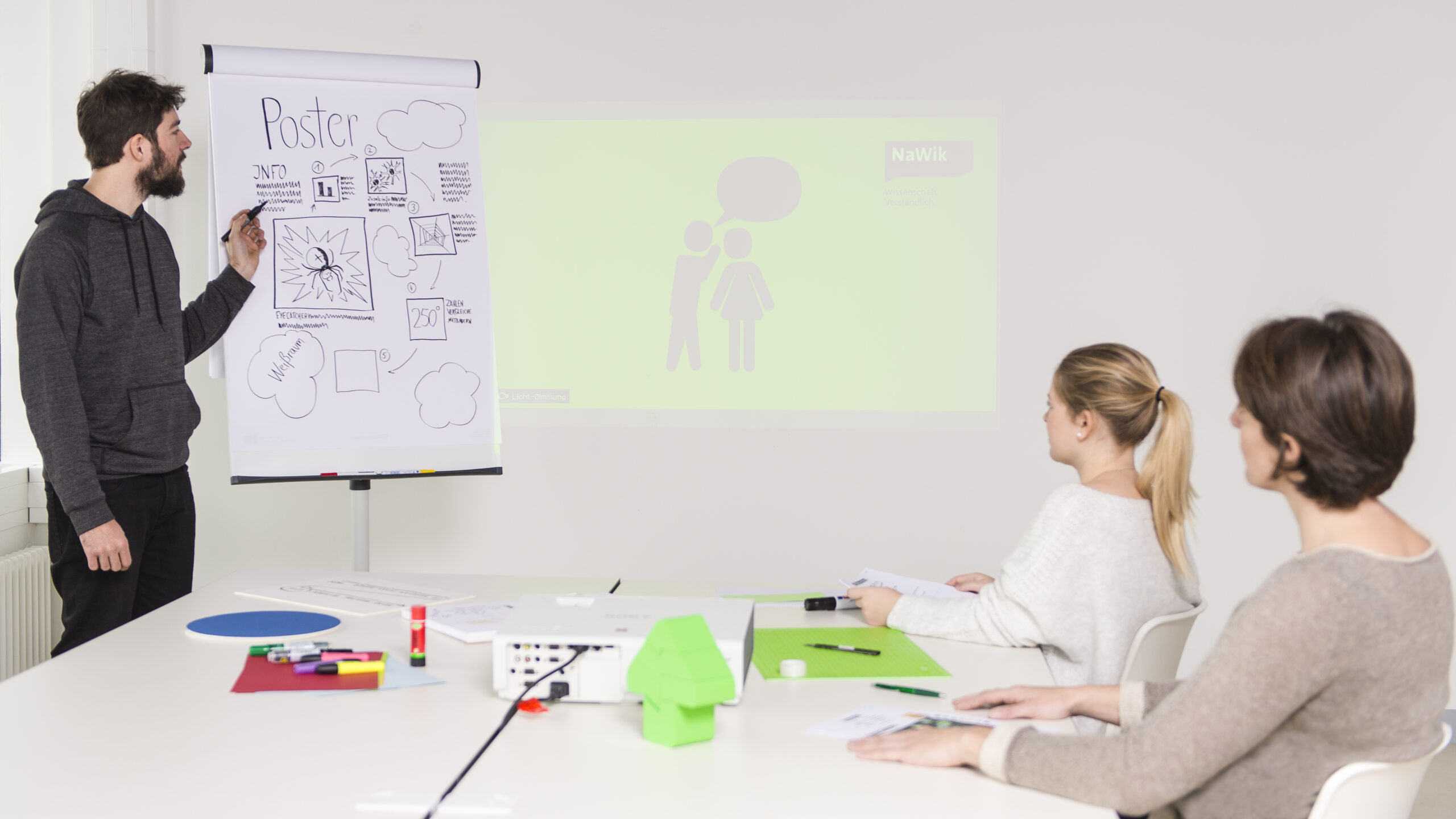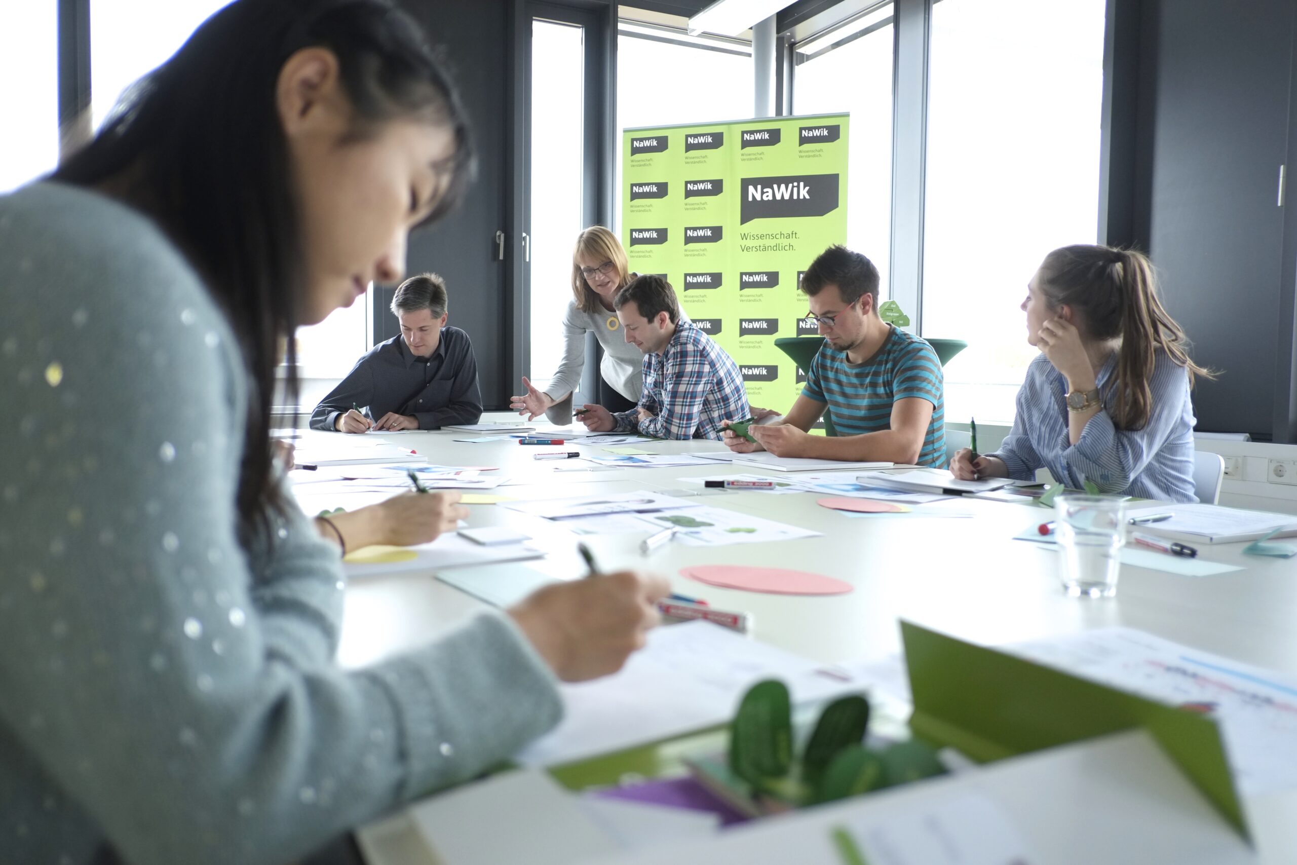 Seit 2012 vermittelt das NaWik die Grundlagen guter Wissenschaftskommunikation. Mit seinen praxiserprobten Aus- und Weiterbildungsformaten möchte das NaWik Forschende dabei unterstützen, die Ziele, Methoden, Ergebnisse und Herausforderungen ihrer Arbeit verständlich zu kommunizieren und Dialoge darüber zu führen. Die interaktiven Seminare werden von erfahrenen Dozierenden geleitet und können vor Ort bei den Kunden, in den Institutsräumen auf dem Campus des Karlsruher Instituts für Technologie (KIT) oder als virtuelle Kurse gebucht werden. Die Bandbreite der Angebote reicht von Workshops zu den Grundlagen der Wissenschaftskommunikation, Kursen zum Schreiben, Visualisieren und Präsentieren, bis zum professionellen Medientraining. Professionelle Wissenschaftskommunikation vermitteln auch die Online-Kurse, die das NaWik auf seiner E-Learning-Plattform, dem WissKomm-Campus, anbietet.